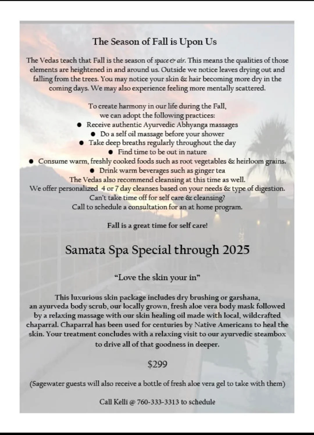 Call Kelli @ 760-333-3313 for questions / to schedule.